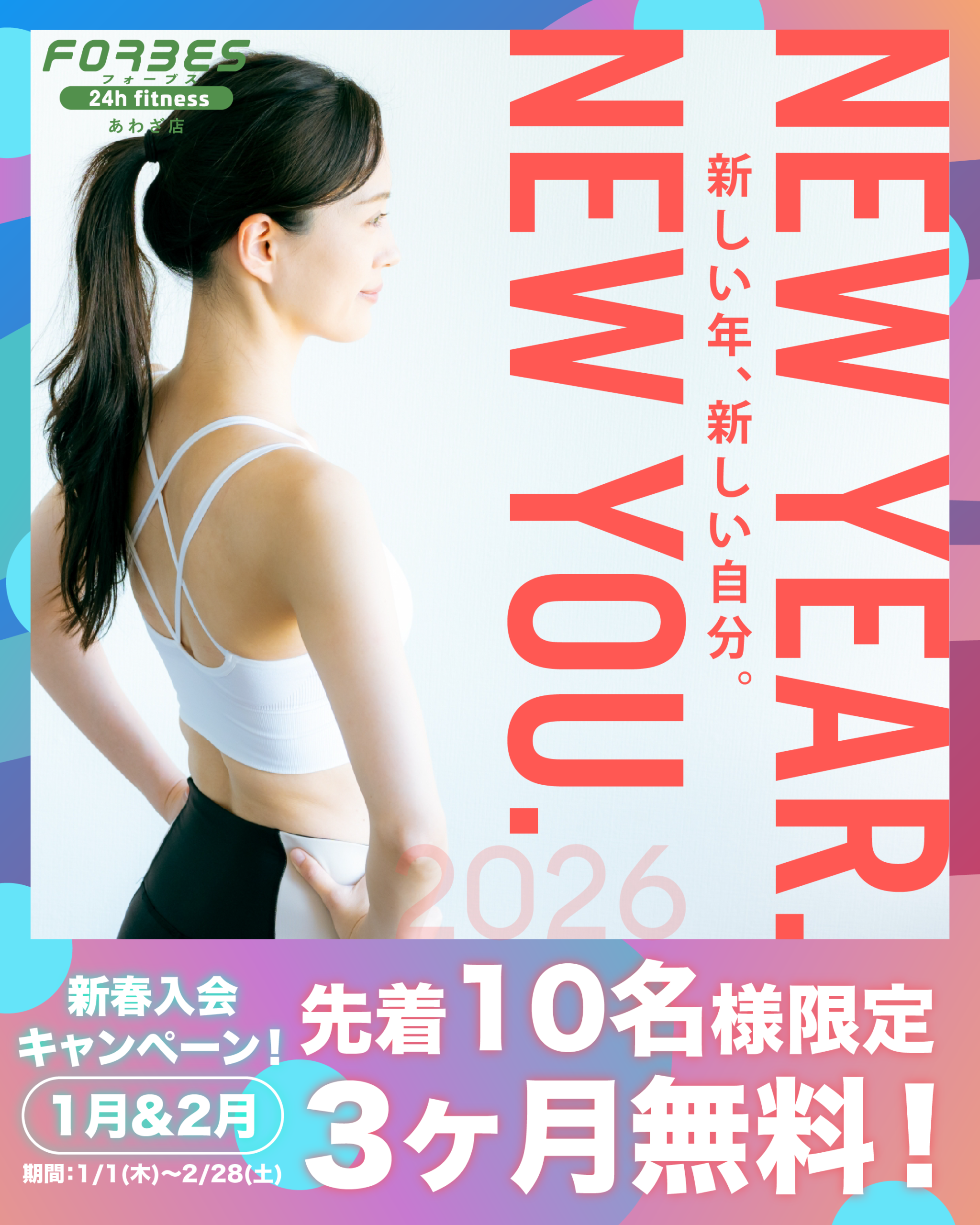FORBES 24h fitness あわぎ店では、2026年のスタートを応援する新春入会キャンペーンを実施しております。